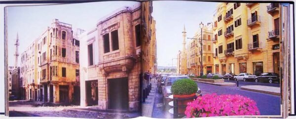 A gallery of photos portrays the war ruins of buildings in the heart of the city and the renovated versions of the same structures leaving the viewer with great awe and a sigh of contemplation of what has been and what has become. The book is a record of the detailed reconstruction projects undertaken after the end of the Lebanese civil war. It reveals the amazing efforts made to change a practically demolished area into first-class investment locations that attract the world’s most renowned corporations, restaurant chains, banks, and institutions.